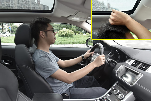 身高175cm的体验者坐入驾驶室,头部空间大于一拳。