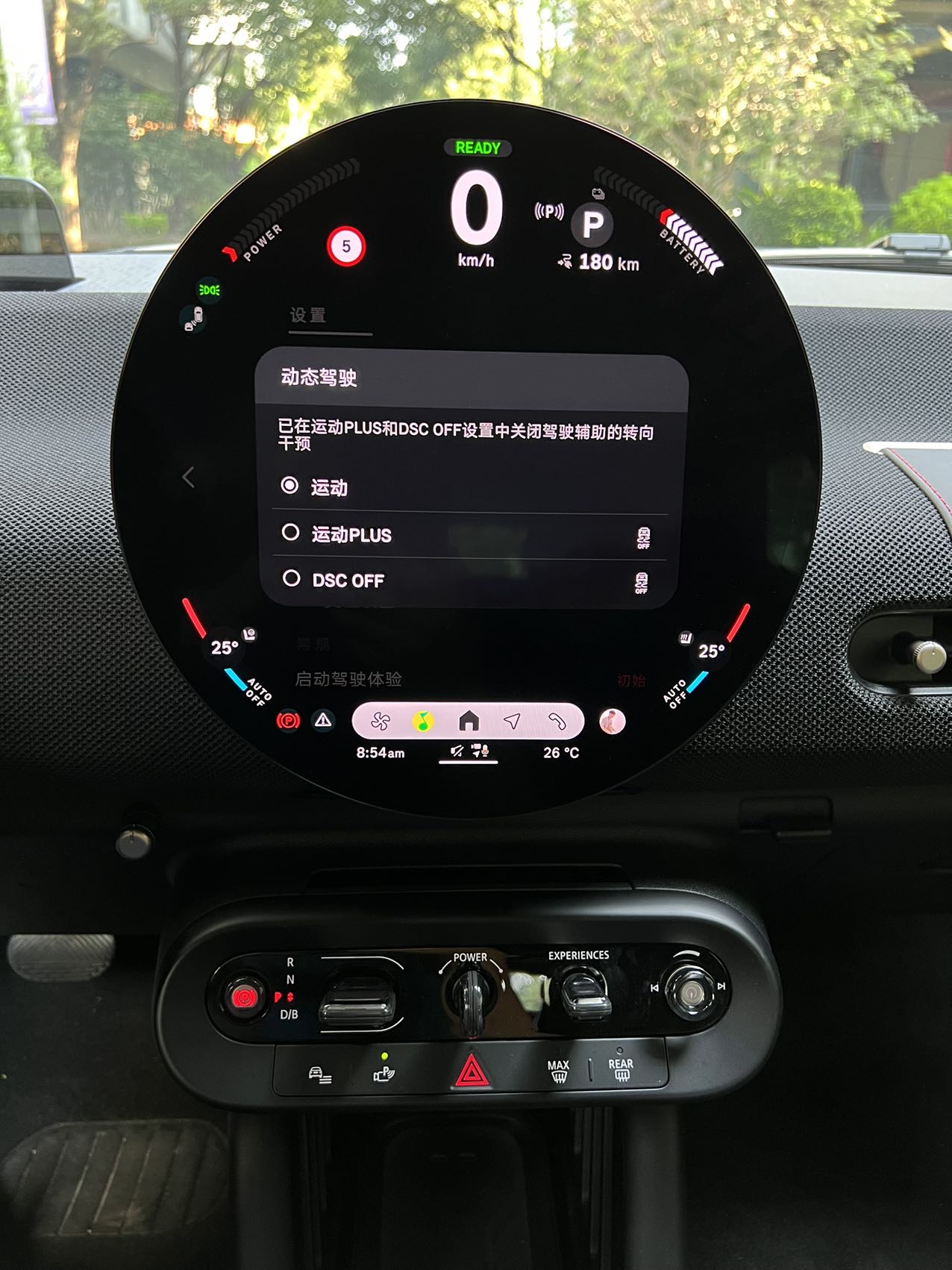 驾驶模式跟着主题走,中控有物理拨杆可切换,这款JCW套件不但提供了运动Plus,甚至还有DSC防滑关闭,这个乐趣非常到位了,虽然只是前驱,但可控性更高,新手也可以偶尔躁动一下。
