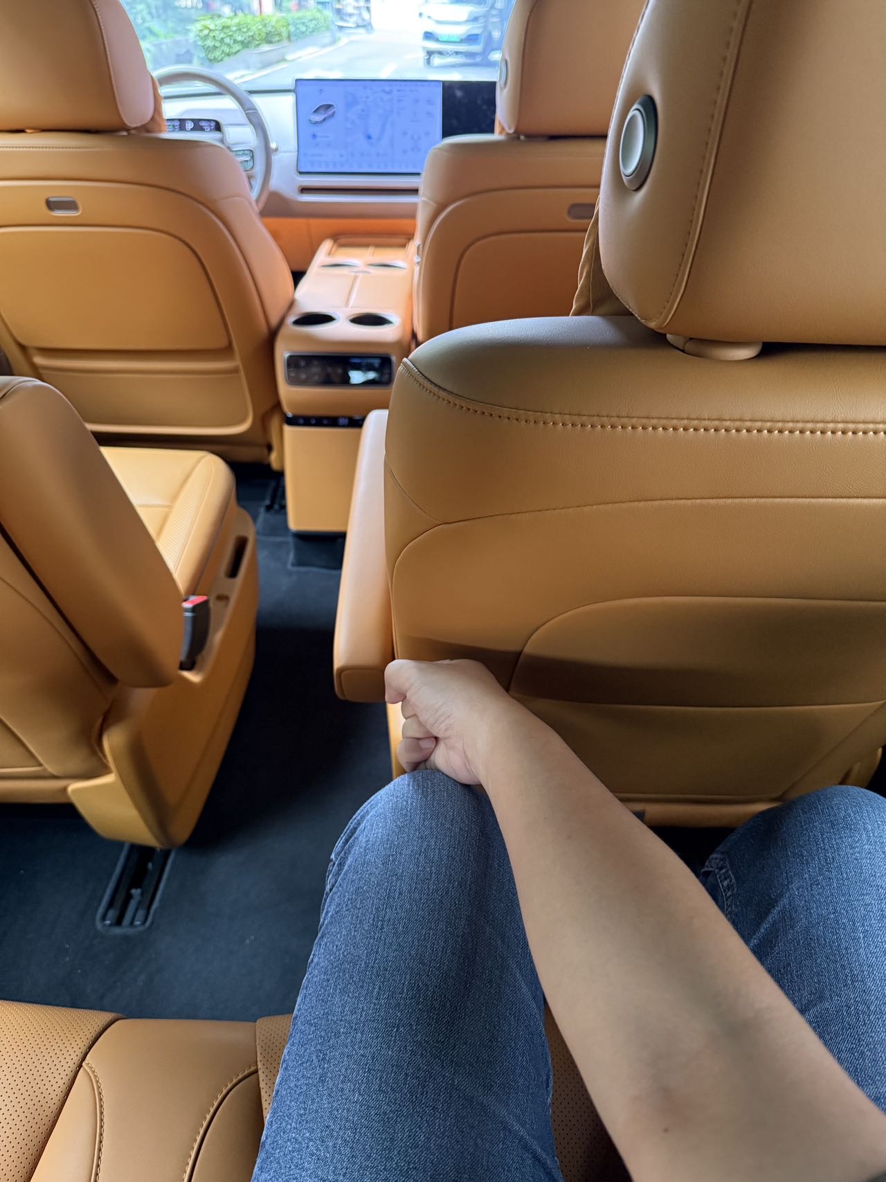 大家最关心的空间方面,我的主观感受是三排空间和L9差不多,但地板平坦略胜L9;而二排空间则略微不如L9。