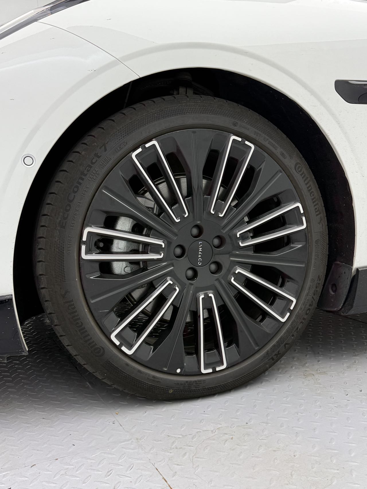 试驾车这21寸轮毂是含在一个叫锋曜运动套件包里的,选装需要8000元。除了轮毂还有马牌EC7轮胎,裙边和前唇,以及电动升降尾翼,建议选上。