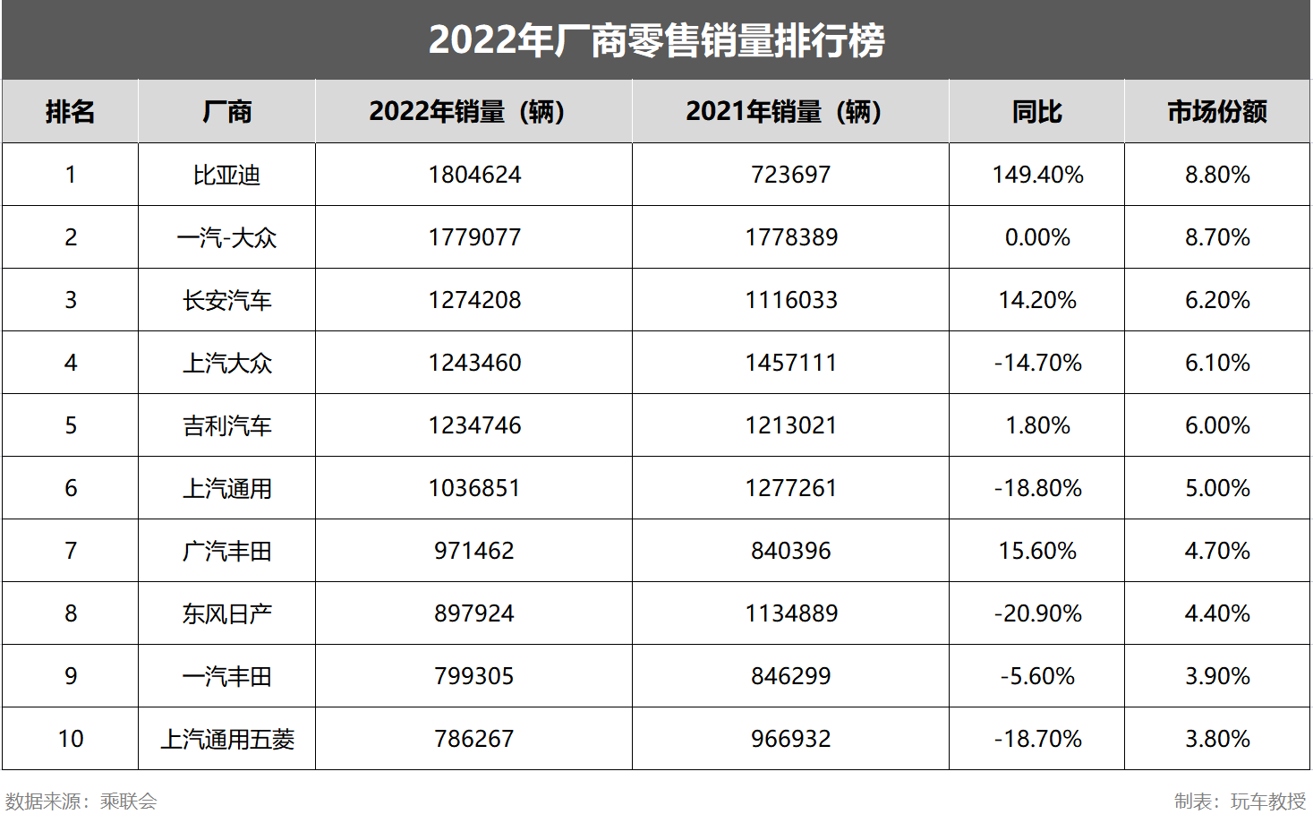 2022年畅销车企盘点:比亚迪是最大赢家!