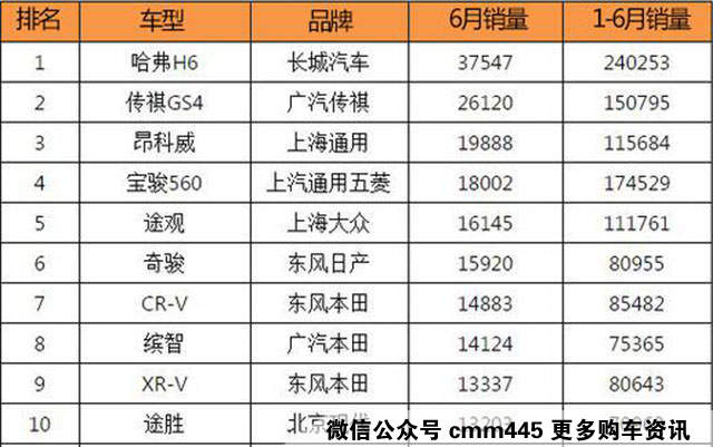 每当我看到6月份SUV销量的时候,就感到很吃惊,为什么整天那么多人喊着抵制日货,但是日系车的销量也不见得下降很多,尤其是SUV的销量,6月份SUV销量前十日系竟然占了4席。下面我们先看一下6月份全国SUV销量排名前十位。