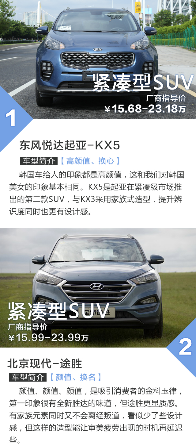 说到颜值就会让人想起韩国,汽车也如此。韩系车近几年的设计已经走出自己的风格,流体雕塑、虎啸式中网等都给人强烈的视觉印象。起亚KX5和现代途胜则是现在紧凑级里韩国品牌最佳代表。这次我们就来看看这对兄弟,作为消费者的我们应该怎么选。