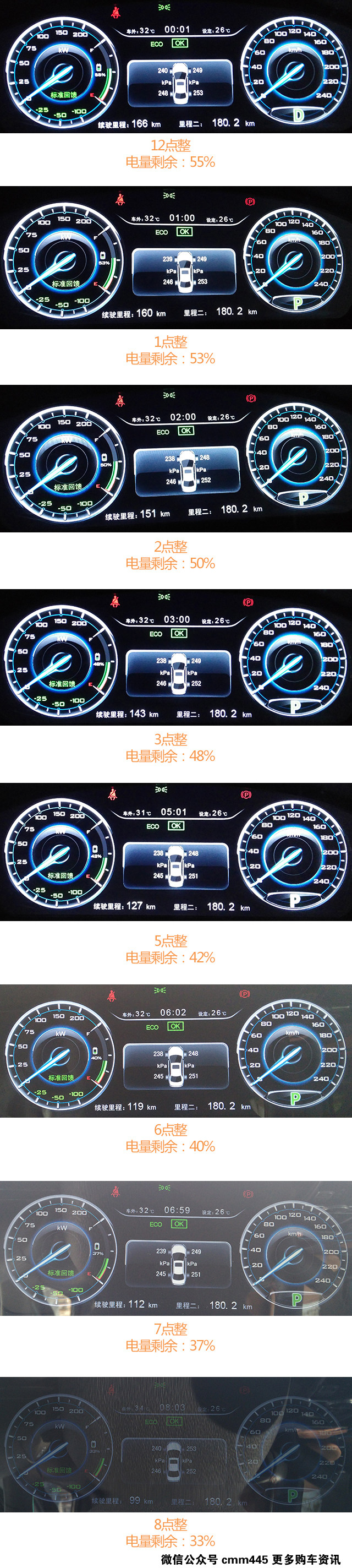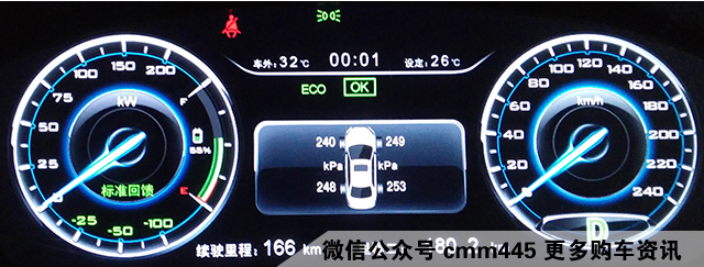 剩余55%电量续航里程166公里(请忽略没有调好的车内时钟)