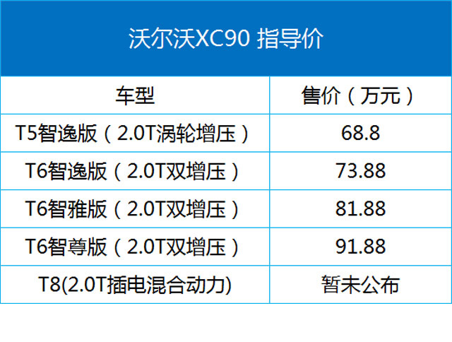 沃尔沃XC90近日正式上市,T5与T6车型的售价区间为68.8-91.88万元,顶配T8车型的售价则尚未公布。新车的变化主要为配置的增加,外观与内饰都无太大变化,新车搭载了不少沃尔沃的最新科技,如第二代高度自动驾驶技术、全语音控制的SENSUS只能车载交互系统、Clean Cabin清洁驾驶舱,而且全系提供7座车型可选,车重较上代车型减少了125kg。