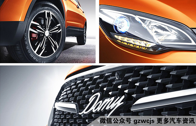 外观方面,大迈X5升级版拥有4527mm*1836mm*1682mm车身尺寸以及2680mm的超长轴距。众泰大迈专属LOGO——“Domy”标识的应用,赋予大迈X5升级版更独特的设计感。此外,大迈X5升级版全系增配冰蓝运动大灯、17寸双色铝合金轮辋及红色刹车卡钳,使新车的运动性得到了进一步加强,彰显新潮、动感的全新设计理念。