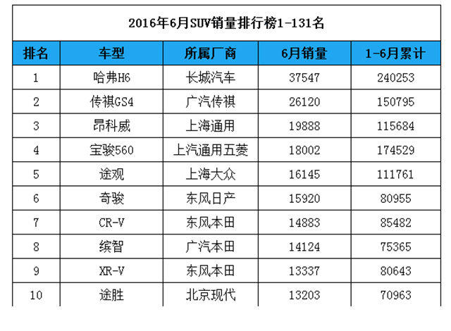 对于国人的购买观念,那是永远想着用最少的钱去买到最实用的前提下肯定会去考虑目前最火的SUV,只是我们可以看看6月份前十的销量榜,最后发现只有一辆车型是满足需求的,那就是目前已经成为神车的宝骏560了。