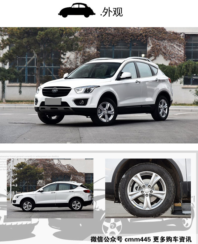 奔腾X80的外观颇具轿跑风格,4586*1820*1695mm的车身尺寸属于标准的紧凑型SUV。外观设计是X80的一大卖点,并且由于外观设计并不是十分激进,所以内部空间还是有保障的,相比马自达CX-4来说,X80这种轿跑式的造型设计更加保障实用性。