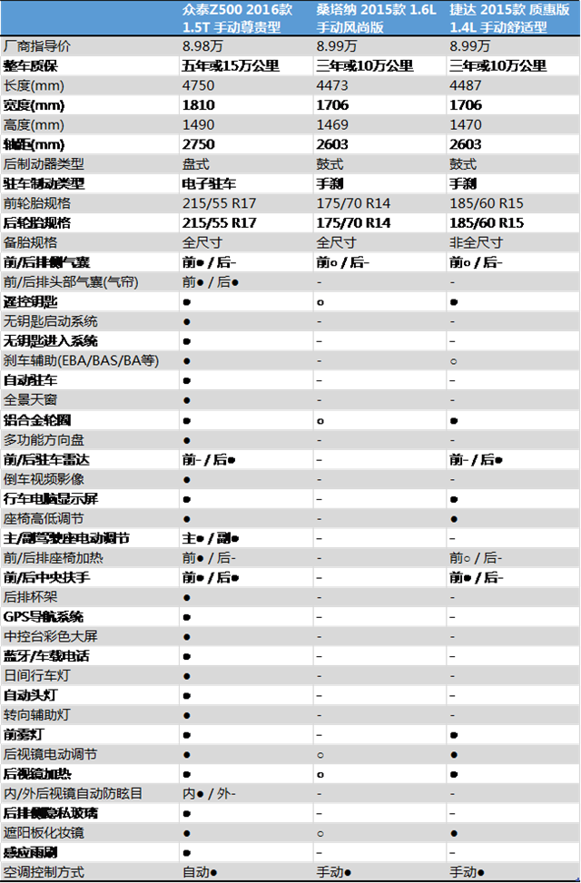 除了空间表现更加出色之外,众泰Z500的配置水平同样让新桑塔纳和新捷达无地自容。在众泰Z500丰富的配置面前,新桑塔纳和新捷达更像是被扒光了衣服赤身裸体晒在阳光下的婴儿,配置水平用一个字就可以形容“无”,言简意赅。