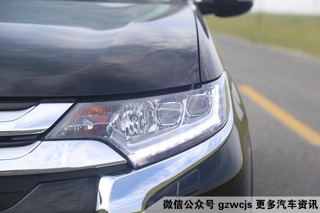 新欧蓝德采用的正是中期改款的外观设计,前脸大量使用镀铬饰条,在中网双辐条设计突显三菱厂徽,同时和扁平的头灯组形成互补。大灯组与雾灯之间的联系则通过两条造型夸张且锐利的镀铬饰件,正中央辅以黑色亮面的材质,将中网的视觉效果往下延伸。