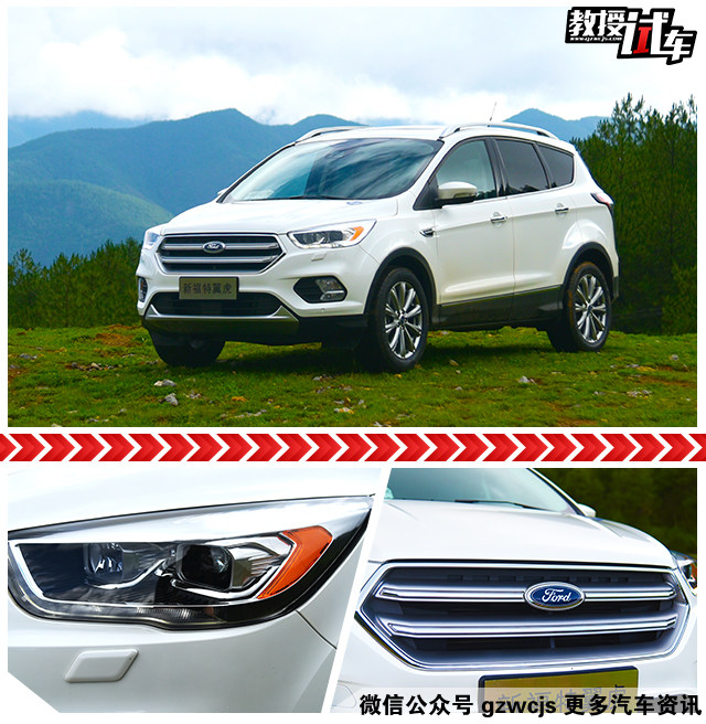 新翼虎属于中期改款车型,外观上延续福特标志性的“马丁式”家族设计,标志的大尺寸倒梯形的进气格栅与全新设计的带LED日间行车灯的前大灯融为一体,共同营造出一种动感时尚的前脸,采用18英寸的多幅式轮毂(运动版上为19寸熏黑轮毂)。