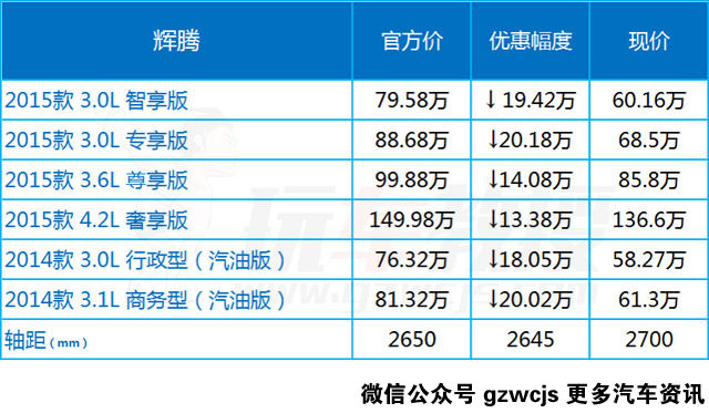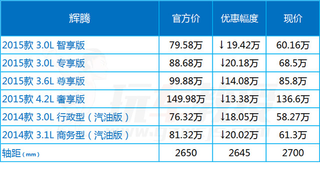 作为大众品牌唯一一款在德累斯顿玻璃工厂纯手工生产的车型,辉腾一直承载着德系粉的情怀。而随着最后一辆辉腾下线,注定这辆大众豪华车将暂别舞台,但重返市场的日子也是遥遥无期啊。可能是为了清库存,教授最近看到广州地区进口大众经销商发出的消息,辉腾最高优惠20.18万,最低六十万出头就能拥有辉腾,详细优惠信息如下: