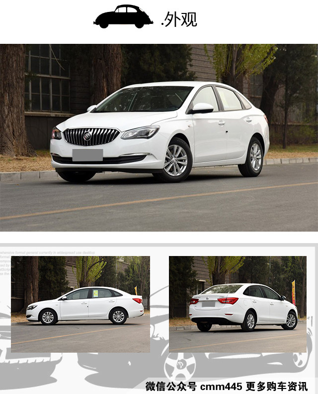 别克英朗的外观设计十分漂亮,尤其是前脸,大灯的造型看上去十分有科技感,甚至有些像是LED大灯,直瀑式进气格栅也比较有精致感和层次感,侧面的腰线有几分君越的特点,不过车尾的造型设计得略显小气,英朗的车身尺寸为4587*1798*1463mm,轴距为2840mm,这样的尺寸属于标准的紧凑型轿车。
