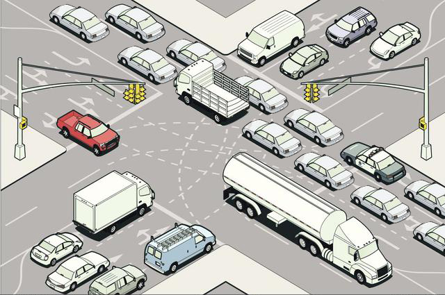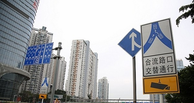 在没有信号灯的交叉路口,遇到停车排队或者缓慢行驶的前提下,必须采用“拉链式”通行;违者罚款300元。