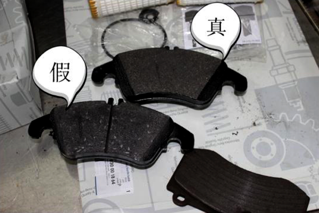 另外,两者的倒角角度明显不同,假制动盘影响振动易产生噪音,长期看也会损伤到制动盘。还可以比较摩擦片的厚度,也能明显看到差异。