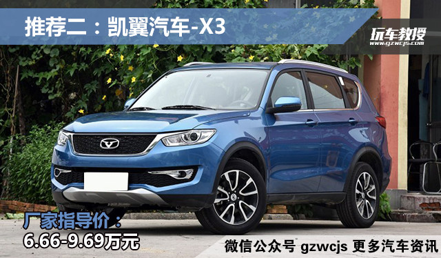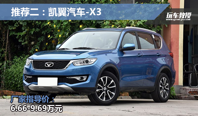 教授点评:凯翼虽然算是一个新的汽车品牌,知名度不算高。X3作为旗下的真正的一款SUV,采用时下非常流行的设计语言,层次感分明的前脸造型采用镀铬点缀,具有不错的质感,车尾采用外挂式备胎设计在小型SUV当中也不多见,对于追求个性的年轻人说是不错的选择。