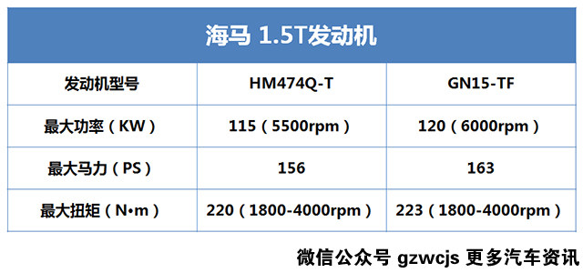 福美来与海马V70使用的代号为HM474Q-T的1.5T发动机,而海马S5与海马M6使用的是代号GN15-TF的1.5T发动机,相对而言,后者的发动机技术更为先进,这一台自主研发的发动机加入了铝制缸体、双顶置凸轮轴结构以及VVT可变气门正时技术。