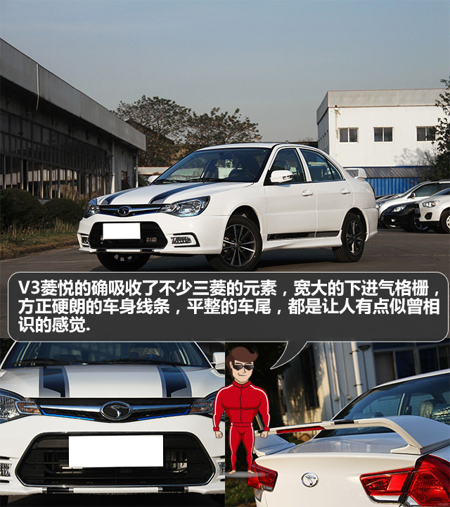 外观方面,V3菱悦的确吸收了不少三菱的元素,宽大的下进气格栅,方正硬朗的车身线条,平整的车尾,都是让人有点似曾相识的感觉,要是再加个尾翼,那就更加有运动气息了。