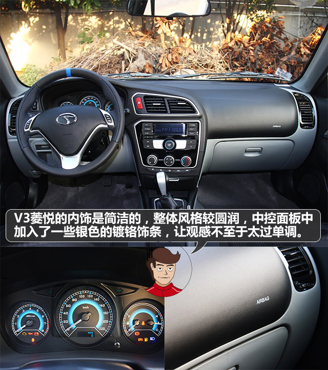 V3菱悦在内饰设计上比较简洁,内饰材料毫无疑问的使用了硬质塑料,内饰观感比较圆润,也是满满的怀旧风啊。还好中控台的出风口和按键区域的周围加入了镀铬饰条,不然真的会误会它是十年前的车。教授要吐槽的是该车只有最高配车型才配备双气囊,这确实不应该。