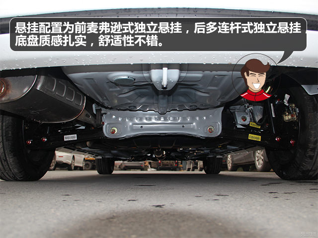 悬挂配置为前麦弗逊式独立悬挂,后多连杆式独立悬挂,这个价位能有后独立悬挂确实少见,实际底盘的质感比较扎实,但不会太硬,舒适性不错。电动助力的方向盘阻尼适中,虚位也不大,操控起来不会很艰难。总体来说,V3菱悦就是一辆好开好使,动力不弱的家用车。