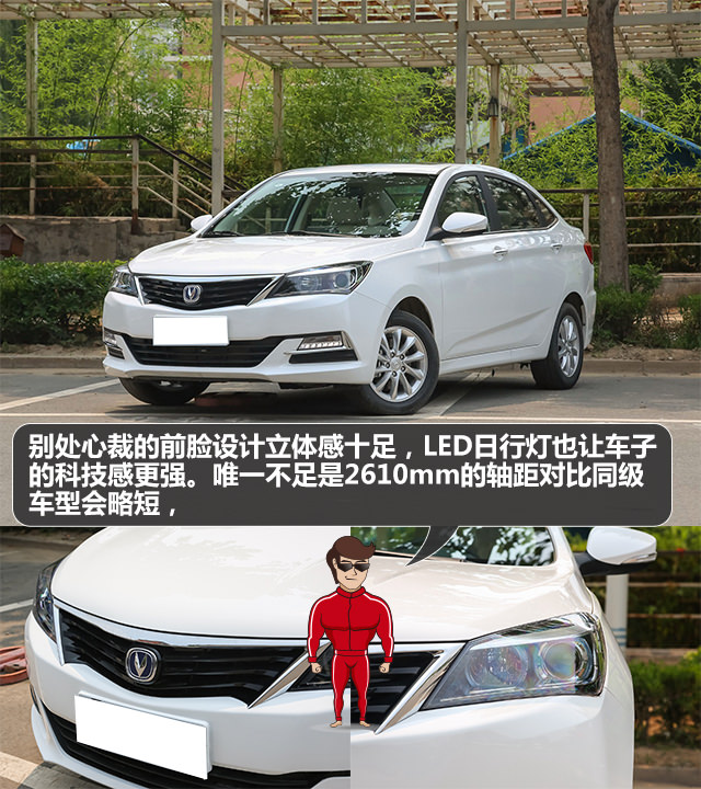 悦翔V7的前脸由较强的设计感,微微隆起的引擎盖以及曲折造型的中网,提升立体感的同时又不会太突兀。值得表扬的是除了最低配车型以外,全系标配了雾灯,在光线不足或者能见度低的情况下,雾灯还是很实用的。轴距为2610mm,在同级车型中不占优势,但整体身材比较匀称,不会让人觉得它短小。