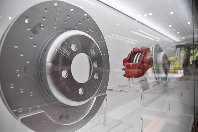 或者是一个脸盘大的刹车盘,还有制动力强劲的多活塞刹车卡钳?