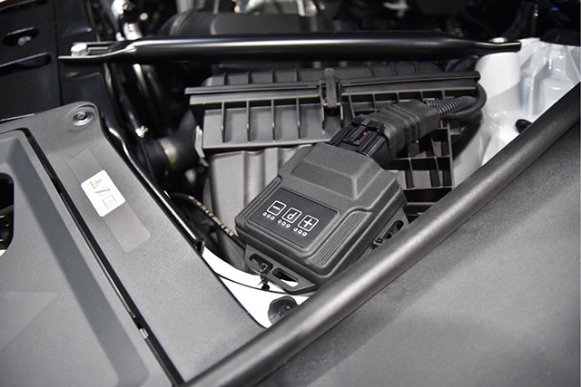 整洁的发动机舱和原厂并没有两样,不过在动力升级包的加持获得了30匹马力的增幅。