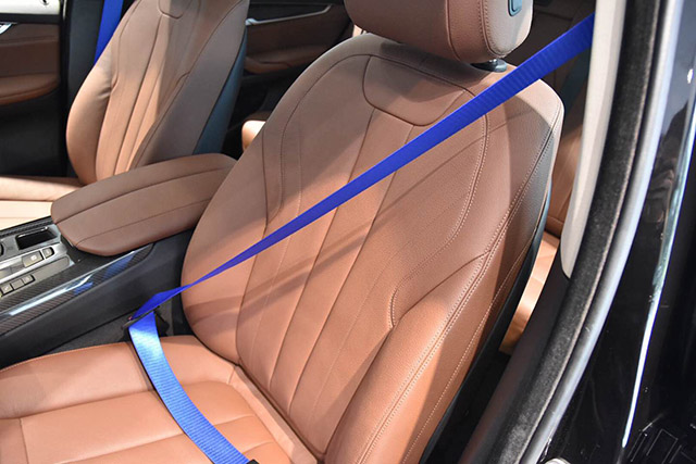 鲜艳的蓝色安全带给原本沉闷的内饰增加了一点亮色。