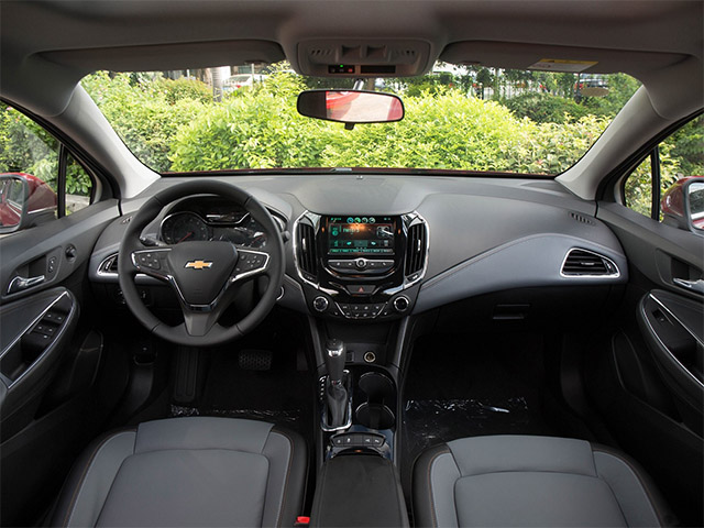 科鲁兹的内饰同样采用对称式的设计,用料方面加入了皮革包裹。中控搭载7英寸大屏,比福克斯的小,界面划分明确,操作方便,只是界面比较旧,欠缺科技感。