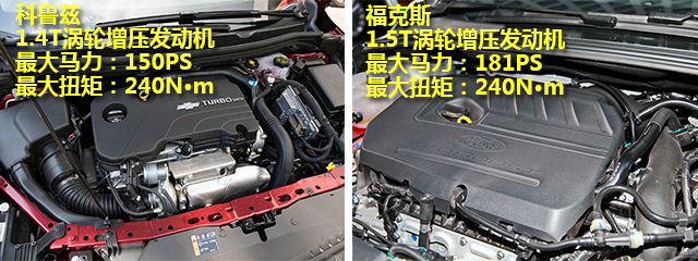 动力方面,以相近排量的车型作比较,福克斯搭载的1.5T涡轮增压发动机,最大马力为181PS,最大扭矩为240N·m,科鲁兹搭载的是1.4T涡轮增压发动机,最大马力为150PS,最大扭矩同样为240N·m,单看数据,福克斯的动力是比科鲁兹领先一个档次的,而排量则只是比科鲁兹多了0.1L。在实际的行驶中,科鲁兹的150PS动力对于紧凑型车来说也是够用的,但相对来说福克斯的动力则更加的充沛,比科鲁兹来得游刃有余。