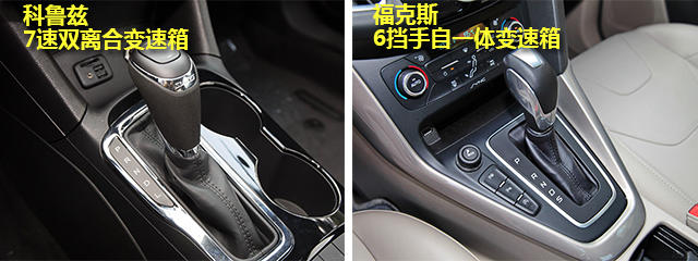 传动方面,福克斯使用的是6AT手自一体变速箱,科鲁兹使用的是带手动模式的7速双离合变速箱。论换挡速度和燃油经济性,科鲁兹稍微领先一点,而福克斯的6AT无论是换挡逻辑还是动力输出的平顺性都比较优秀,成熟的6AT可靠性也高。