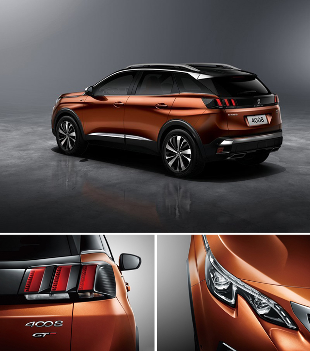 全新标致4008采用标致最新家族设计语言,其基于海外全新标致3008而来,并针对中国市场加长了55mm轴距,新车长宽高分别达到4510/1850/1662mm(带行李架),轴距达到2730mm。