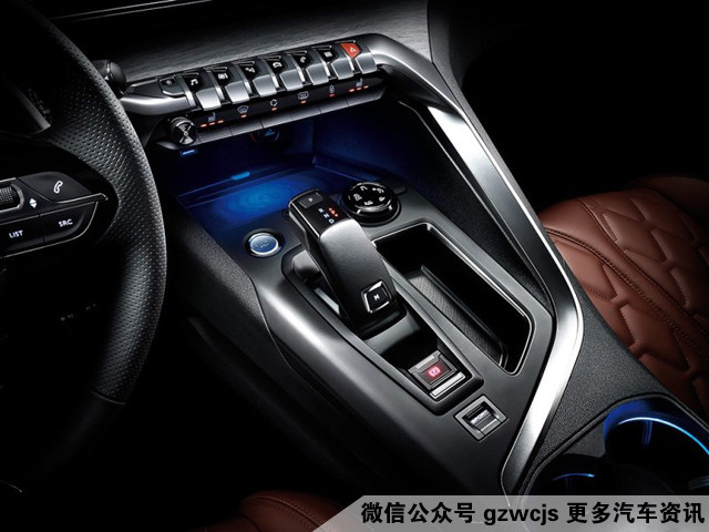中控台配备有一款独立8英寸触控液晶显示屏,下方物理按键搭配蛇形电子换挡杆,营造出一种战斗般的气息。车内搭配棕色真皮座椅和蓝色氛围灯,给人感觉更加具有质感。
