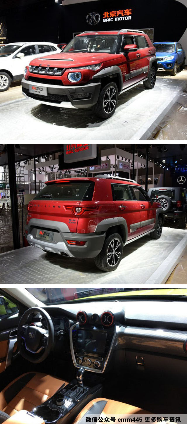在车展上,北京BJ20发布了预售价为10-14万元,小编是觉得这价格定的却有点尴尬。在BJ20身上可以看到不少熟悉的设计元素,例如极光和自由光,整体呈现一个比较硬派越野的风格,不管怎么说还是有些个性的。内饰的颜值小编感觉比外观高了不少,至少顺眼很多,但和硬派的外观又有点不太大搭调的感觉。北京BJ20搭载1.5T发动机,匹配6速手动或CVT无级变速箱
