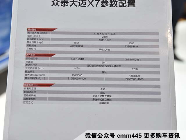 由配置表可以知道,这款大迈X7将采用的是最大功率110千瓦的1.5T涡轮增压发动机,或者是最大功率125千瓦的1.8T涡轮增压发动机。根据这两款发动机在大迈X5以及众泰Z700上的表现,动力油耗表现方面比较逊色。