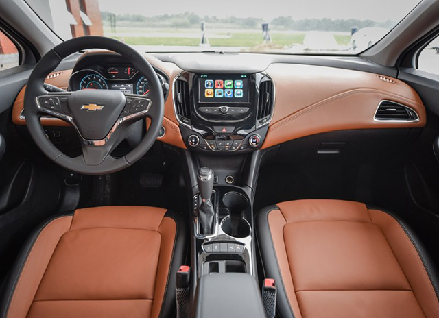内饰方面,全新科鲁兹依旧延续经典车型的对称式设计,中控台虽使用了大面积硬塑材料,但都经过了软化处理,整体的车厢氛围和质感还是相当不错,双色拼接的设计看起来时尚年轻,并且提供多种配色选择来满足不同消费者的需求。此外,全新科鲁兹全系除了标配7英寸显示屏、电子手刹、自动启停、ESP等基础配置之外,还在顶配车型上增加了并线辅助、自动泊车、前后倒车雷达等安全高科技配置。