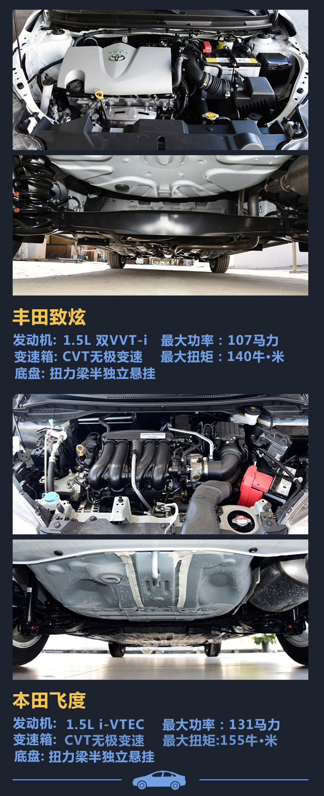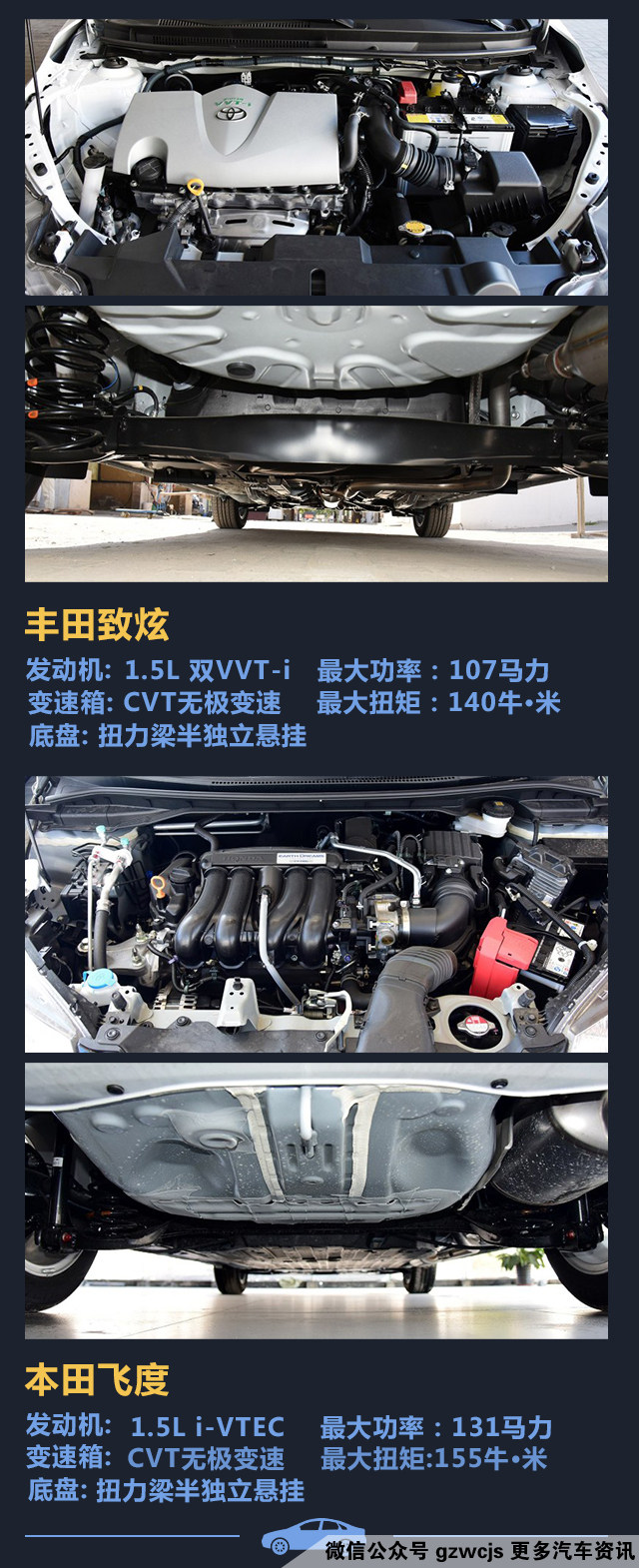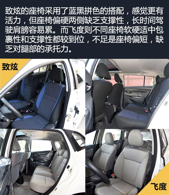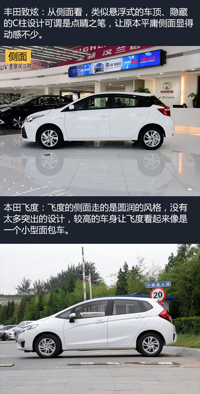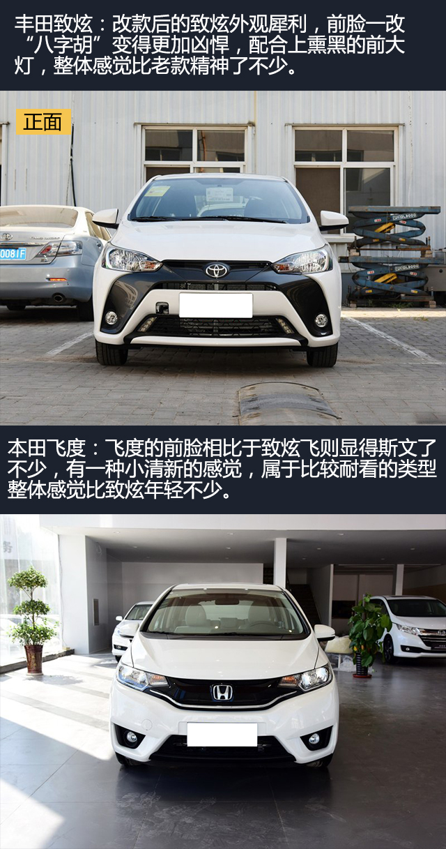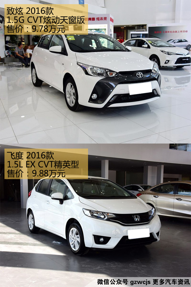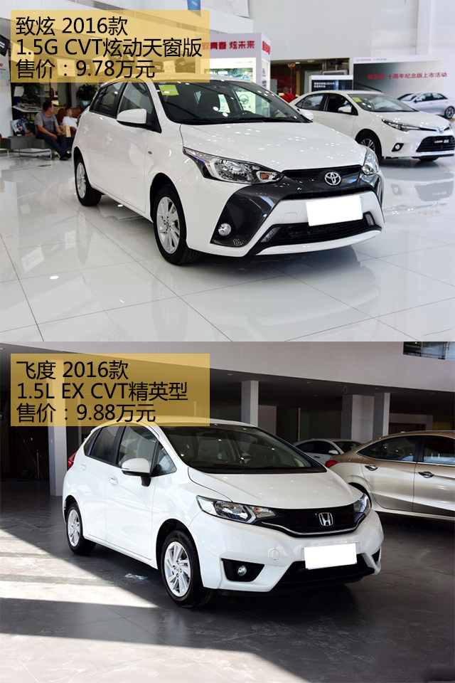 全新改款的致炫指导价为6.98-10.48万元,1.3L和1.5L两个排量的发动机。本田飞度则只拥有1.5L一款发动机可供选择,售价区间为7.38-11.28万元。此次我们选择了YARiS L 致炫 2016款 改款 1.5G CVT炫动天窗版(以下简称致炫)和飞度 2016款 1.5L EX CVT精英型(以下简称飞度)两款在各自车系中关注度较高的车型进行对比,它们的实际购车价仅相差1千元左右。