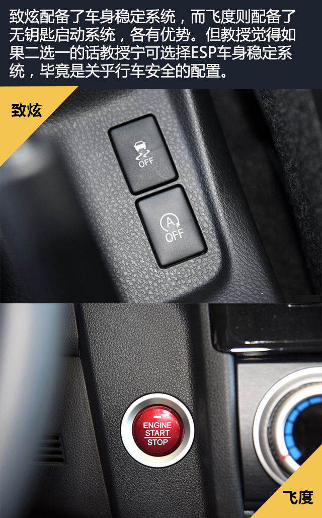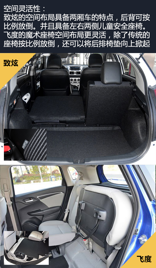 对比的两款车型并非顶配车型,从市场价格来看,飞度目前没有优惠,而致炫则有4千元左右的优惠,配置上致炫较为实用,但飞度的空间布局更为灵活。如果你为了纯粹家用那么这俩车你就要好好权衡一下,若是追求动力则毫无疑问选择飞度。