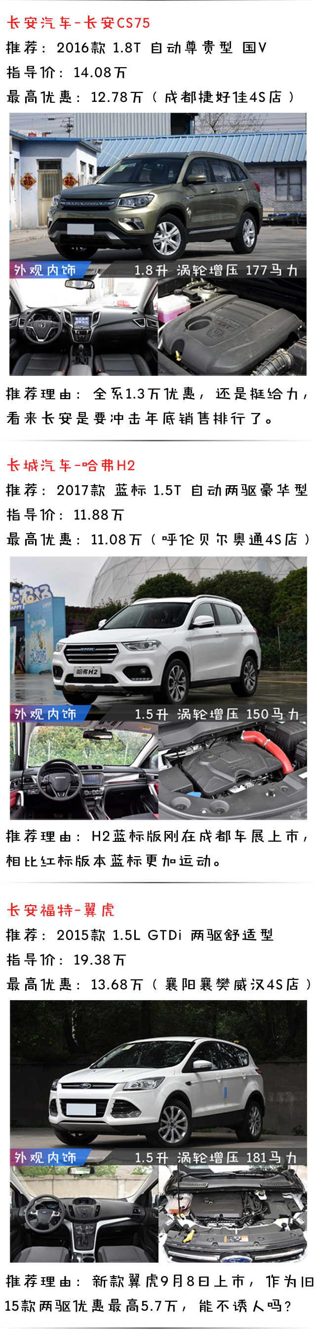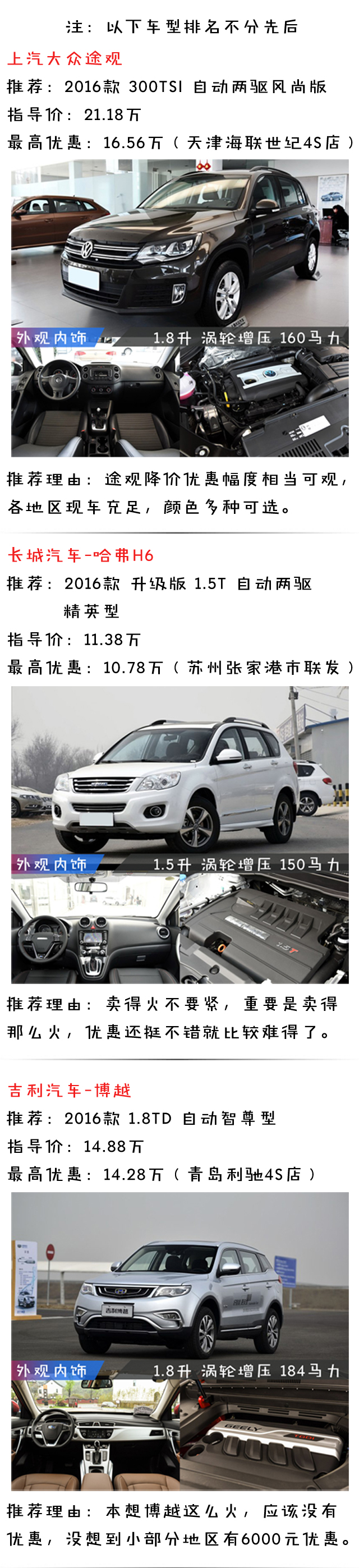 教授之前介绍推荐的车型有不少了,今次我们来关注一下热门SUV的优惠行情,其中不乏有上市不久的车型,例如丰田荣放RAV4和哈弗H2蓝标等。