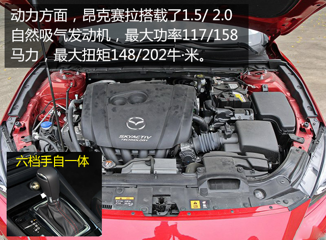 昂克赛拉配备的是我们熟悉的创驰蓝天系列的发动机和六档手自一体变速箱,这套系统最迷人的就是动力输出的“线性”,油门的响应速度极快,换挡干脆利索。跑起山路来会让你更兴奋,悬挂的支撑到位,路感也清晰,指向性精准,真不愧是“弯道王”。
