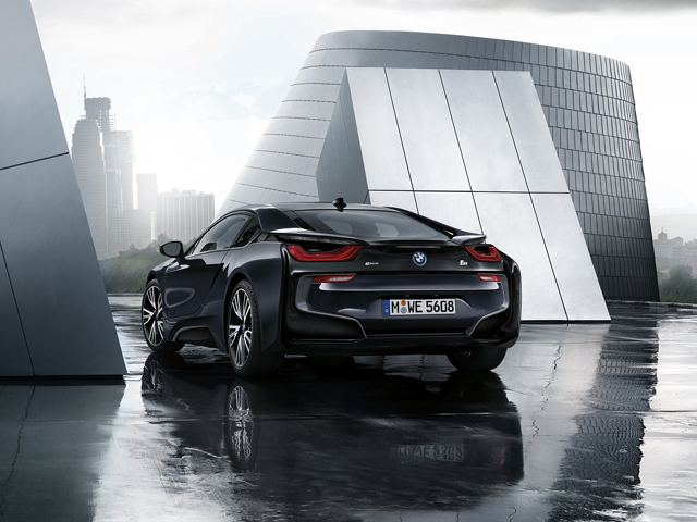 此次,i8的质子暗银版采用了具备高反射特性的Protonic车漆,该车漆基于宝马i8标准车漆色板中的质子蓝打造,因此直观看上去有种偏蓝的视觉效果,光线下的反射与阴影完美衬托出i8这款车复杂的车身曲线。用户也可以根据自己的喜好对这款车进行个性定制,定制目录与普通版i8通用。