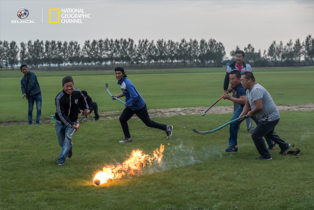 达斡尔族特色的体育项目,算是让人印象深刻的一个。把羊毛裹扎成的球点燃,用类似曲棍棒的棍木进行击打,以攻入对方的龙门为胜利,当地人称之为“曲棍火球”。每当球被击中,都会扬起阵阵的焰火,甚是震撼。有没有害怕被火烫伤?从当地达斡尔族兄弟玩得激烈的情况来看是完全没有了。胆小如我,还是跟我的蒙古马儿悠悠地绕着大草原逛上一圈,享受傍晚时分,艳丽的夕阳逐渐淹没在蒙古草原边际的喜悦。要是给我配上一个姑娘,一段可歌可泣、惊天动地的爱情故事就成了。