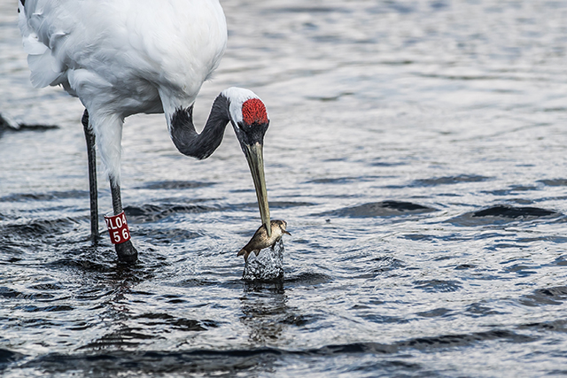 在湖面中,看到有不少单脚站立的丹顶鹤,问及缘故。工作人员说:“一只脚站,一只脚歇会,好让遇到天敌时方便逃跑。“我靠近一只正在进食的丹顶鹤,哪知它转头就啄我一下。我心想,”你怎么不逃跑?难道人类就不是你们的天敌?“