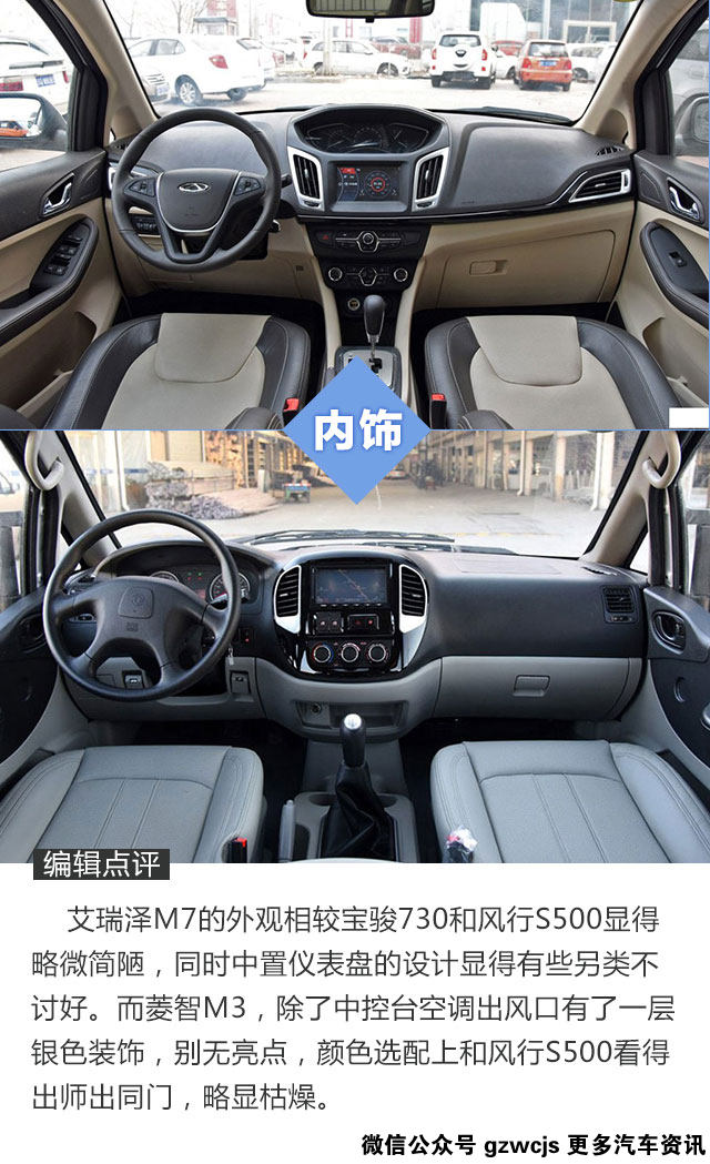 内饰方面,宝骏730一举将外观上的平庸表现逆袭过来,仿木面板和米色内饰显得十分家居话,相当讨好家用车主,整体获得很高的分数。而风行S500与菱智M3设计颜色选择相近,也并非那么不堪,但是会显得相对沉闷。而艾瑞泽M7的中置中控台在教授看来显得十分不适,这次艾瑞泽M7并没有想外观设计那样加分,相反还有些自毁长城。