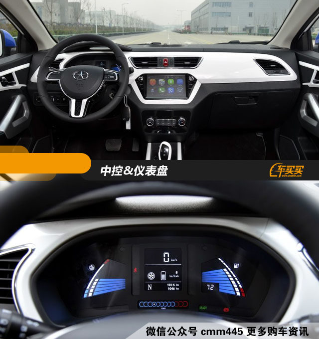 内饰造型比较时尚,白色钢琴烤漆的面板整体效果非常棒,门板采用多种材质拼接,,软性材质质感出色,像宝马一样的鸡腿挡杆是不是很熟悉呢,由于采用的是单级减速器,所以你在这款车上是看不到P挡的。