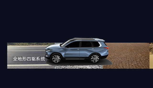这辆SUV的驱动模式也由你决定,配备分时四驱系统,分为2H高速两驱、4H高速四驱、4L低速四驱以及自动模式。不同驱动模式之间的切换通过按键就能完成。