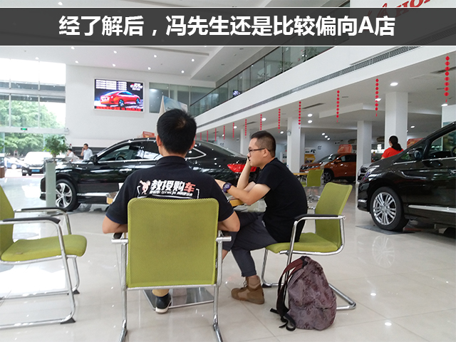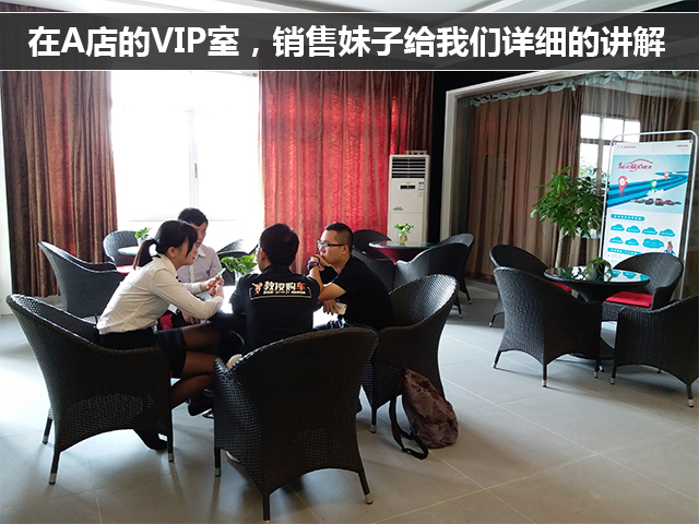 事不宜迟,我和冯先生马上就驱车前往之前筛选出来的第一家店,我们简称A店了。A店的销售妹子很热情,看是教授一起过来购车的,二话不说就邀请我们上去他们家的VIP室,在这个安静舒适的环境下给我们介绍了价格等的情况。
