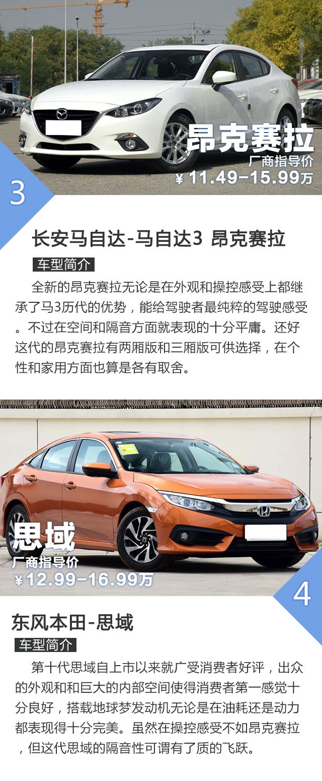 都说年轻人追求颜值,追求动力和操控感受。但是真的将XR-V和自由侠摆在你面前的时候,是选择综合实力更加平均的XR-V还是颜值爆表的自由侠?教授除了照顾颜值还要考虑动力表现,感觉XR-V更加实用。同样在思域和昂克赛拉面前,教授也认为昂克赛拉或许更野性一些,尽管舒适程度上不如思域,但年轻就要野就要浪!到底是推荐轿车还是SUV,教授说话也要按照基本法啊!简单来说,在城市里开车居多的年轻人,轿车较为合适,毕竟省油后排舒适操控好!但如果经常喜欢自驾游或者行驶路况较为复杂,则SUV更加适合!