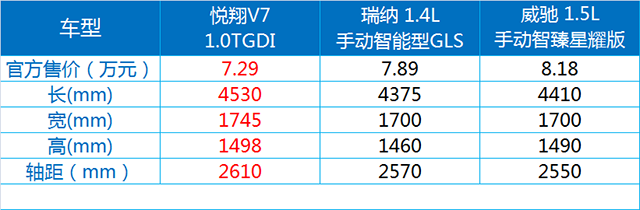 国产车比合资车性价比高,这几乎是大家的共识了。根据级别和配置的不同,通常要高出2万-5万配置差价不等。在6-8万的A级车市场里更甚,合资车的优选只能局限于A0级,像瑞纳、威驰等车型,悦翔V7 1.0TGDI 在这个价位中,无论是空间、配置都更符合我们的选车需求,甚至可以越级对比A+级的朗动、卡罗拉,也不是完全没可能的事。