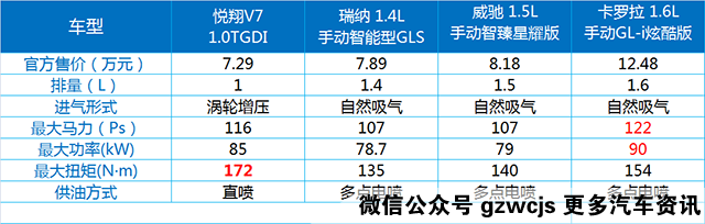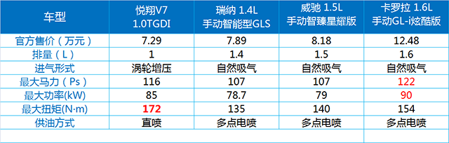 技术参数上,悦翔V7 1.0TGDI也丝毫不比竞品弱,最大116匹马力,最大扭矩为172牛米,对比瑞纳、威驰绰绰有余,对比卡罗拉1.6L不相上下,但在扭矩上略胜一筹,加上1500转达到峰值扭矩的调校,动力开起来不会有肉感。另外偷偷说一句,跟福特1.0T发动机一样配备了超增压控制模式,潜在峰值最大扭矩可达200牛米。